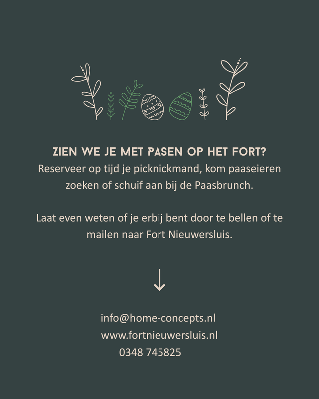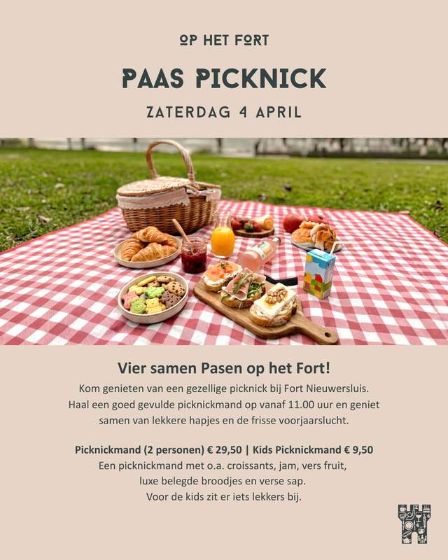 Op zaterdag haal je vanaf 11.00 uur een goed gevulde picknickmand op en zoek je een fijn plekje op het fort voor een ontspannen paaspicknick. Geniet van het buiten zijn en van al het lekkers in de mand.