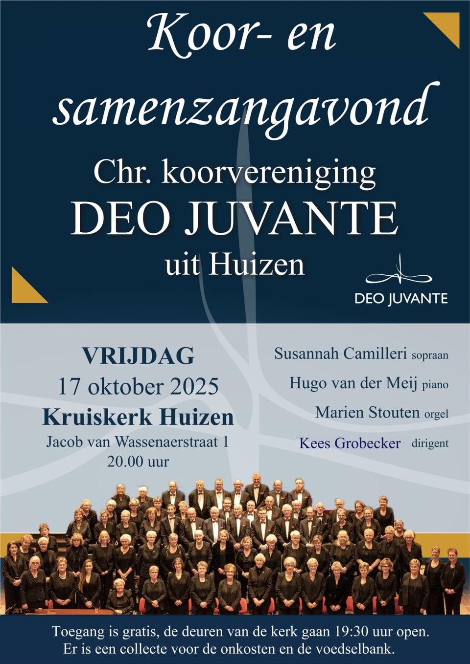 Geniet van een sfeervolle koor- en samenzangavond met Chr. Koorvereniging Deo Juvante in de Kruiskerk in Huizen.