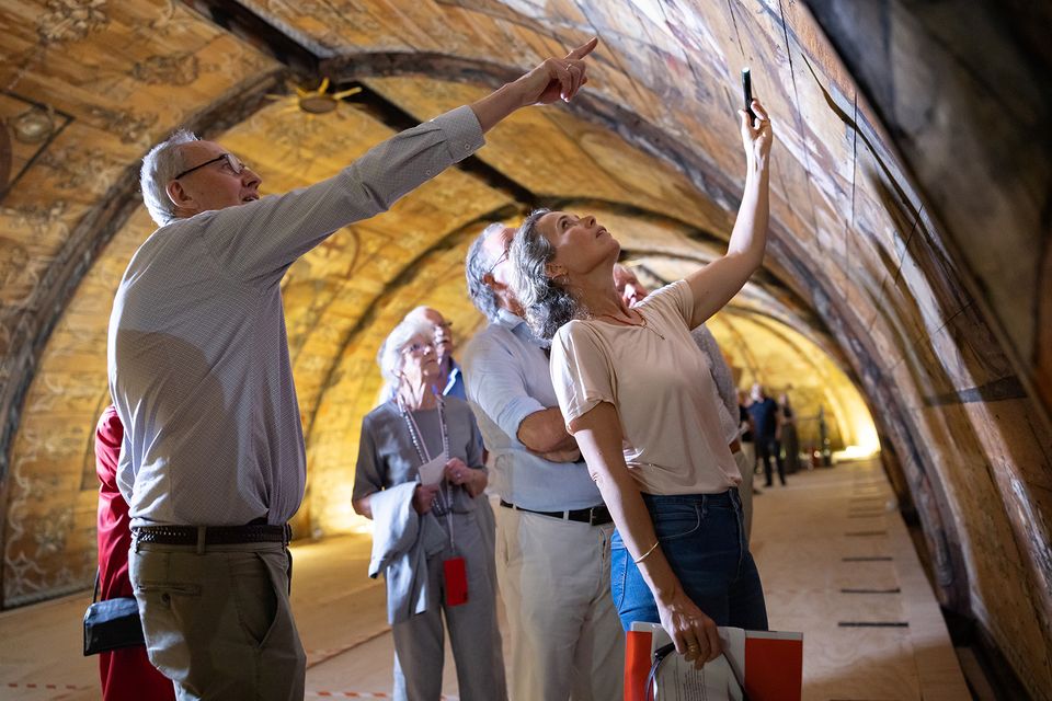 Tijdens de restauratie van het tongewelf van Grote Kerk Naarden kan je een exclusief bezoek aan het tongewelf bovenop de steiger boeken. Met een trap ‘bestorm’ je de geschilderde hemel van Grote Kerk Naarden. Via een steigertrap kom je heel dicht bij de zestiende-eeuwse schilderingen en treed je de werkplek van de restauratoren binnen. Onder leiding van een publieksbegeleider van Grote Kerk Naarden ga je met een klein groepje de steigervloer op en hoor je meer over deze unieke schilderingen en de restauratie ervan.