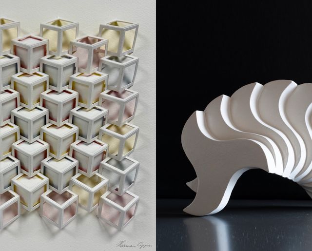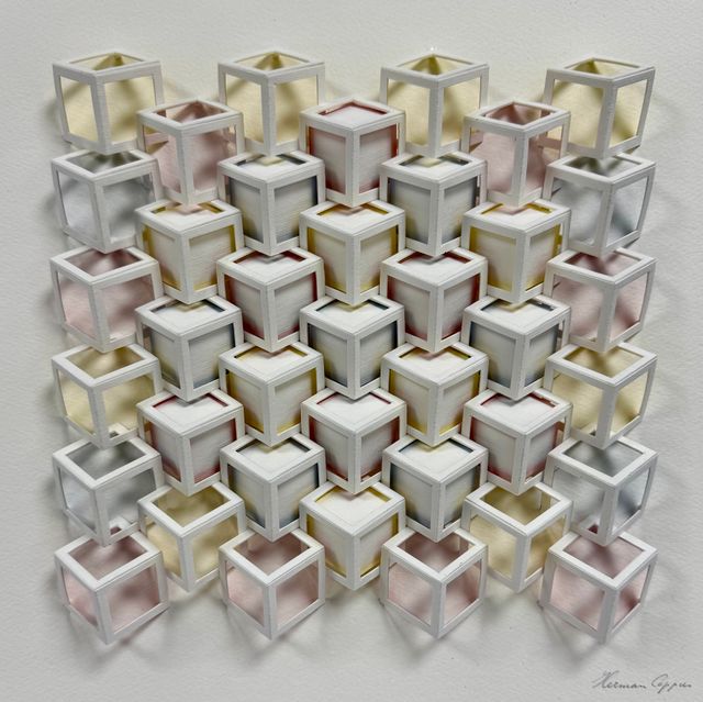 Wilma Bruinsma maakt keramische ruimtelijke objecten waarin ambacht en vormonderzoek samenkomen. Voor haar werk gebruikt zij diverse soorten klei en past zij uiteenlopende technieken toe. De objecten worden afgewerkt met door haarzelf samengestelde glazuren. Haar inspiratie vindt Wilma vooral in architectuur, geometrische vormen en herhaling. De hier getoonde werken zijn gebaseerd op de tegelwanden van het Alhambra, het Moorse middeleeuwse paleis in Granada (Spanje). De vormen zijn doorgaans afgewerkt met een licht glazuur, dat zorgt voor een subtiele en verfijnde schaduwwerking. Wilma volgde de opleiding Keramische Technieken in Gouda, waarna zij haar vakmanschap verder verdiepte met aanvullende leerjaren, cursussen en workshops.