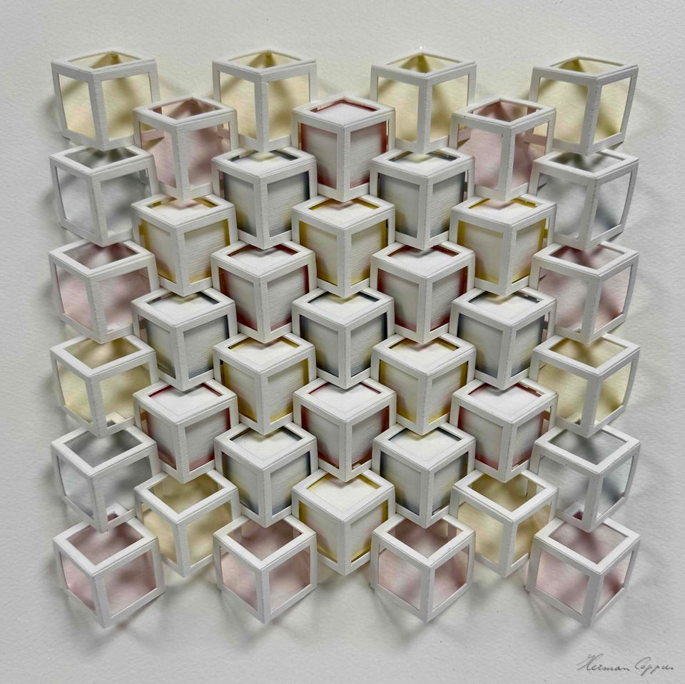 Herman Coppus kan het beste worden gezien in het licht van de traditionalistische moderne stromingen van de vorige eeuw, het Constructivisme en de Geometrische Abstractie. Dit zijn belangrijke inspiratiebronnen voor zijn werk. Binnen deze kaders heeft hij een geheel eigen beeldtaal ontwikkeld, met aandacht voor kleur, ritme en lichtwerking. Herman Coppus experimenteert graag en doet dat nog steeds met een zeer uiteenlopend scala aan materialen, van papier tot kunststof. Daarnaast beperkt hij zich niet tot objecten voor binnen, maar maakt hij ook monumentale structuren voor buiten, alles met een perfectionistische aandacht voor de ambachtelijke uitvoering. Herman Coppus genoot een opleiding tot docent beeldende vakken aan de Stadsacademie van Maastricht, tegenwoordig de Academie Beeldende Kunsten Maastricht.