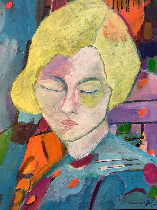 Wat begon zonder strak plan – “I just started painting” – groeide uit tot een herkenbare en persoonlijke signatuur. Haar werk is speels, expressief en vol karakter. In elke lijn en kleur voel je haar vrije manier van werken terug.